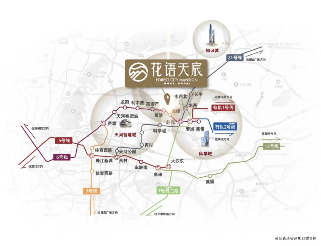 根据《广州市黄埔区国土空间总体规划(2021—2035年)》官方规划,黄埔区发展定位为“广州产业发展增长极、湾区科技创新主引擎、海丝国际合作先行区、具有全球影响力的国家知识中心、东部中心重要承载区”,核心功能为“全国先进制造业基地重要承载区、国际交往中心城市重要承载区、新型国际贸易枢纽”。中铁建花语天宸位于黄埔黄陂板块,毗邻天河智慧城与科学城交汇处,处于“三城一岛”(中新广州知识城、广州科学城、广州海丝城、广州国际生物岛)联动发展的核心辐射范围,东侧为广州科学城总部经济区(已聚集LG、雪松控股等3000+企业),西侧为天河智慧城(车程15分钟,华为、网易等大厂员工外溢首选),南侧为黄埔区府(车程10分钟,政务资源集中),尽享区域产业升级与城市发展的双重红利。