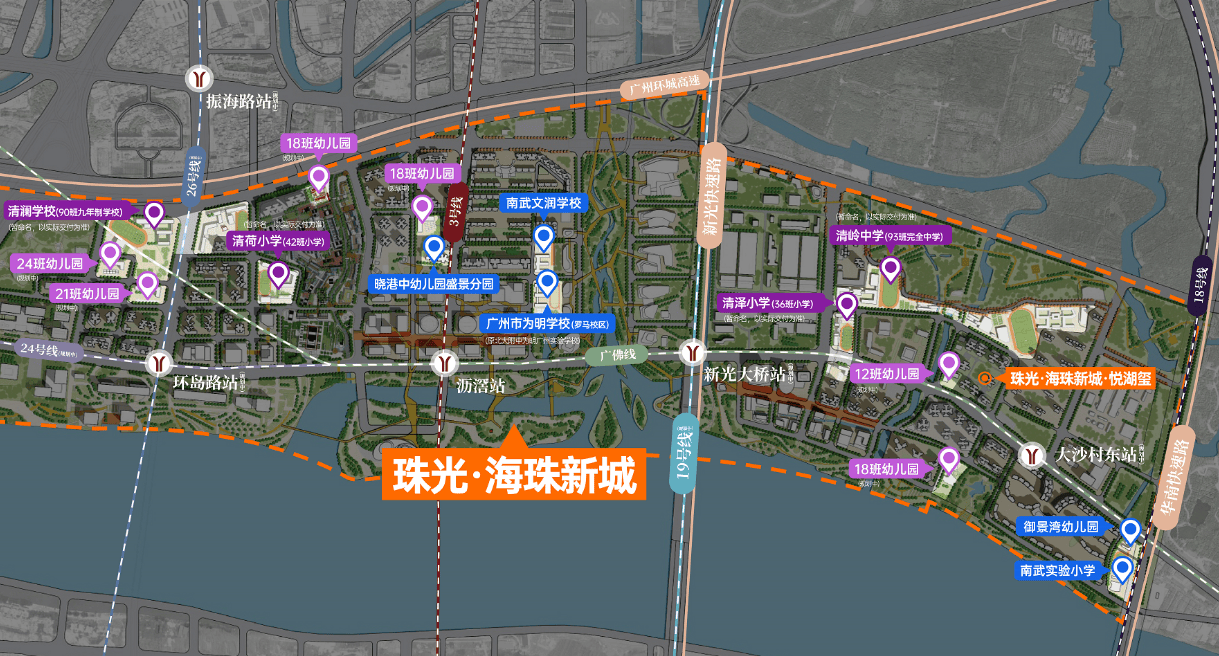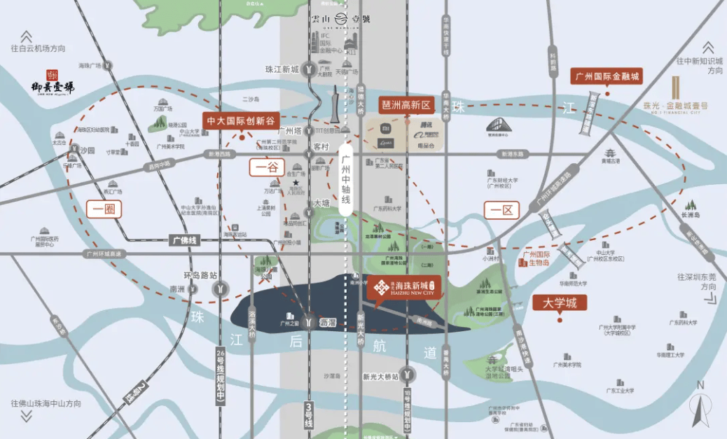 在广州的城市版图中,海珠区始终占据着举足轻重的地位。作为连接天河中央商务区与番禺华南板块的关键枢纽,海珠区不仅是广州传统的商贸重镇,更是近年来城市更新与产业升级的主战场。而珠光海珠新城所处的沥滘板块,正是海珠区南部崛起的核心引擎,被誉为“海珠南大门”的璀璨明珠。这里北接琶洲人工智能与数字经济试验区,南连广州南站交通枢纽,西靠广佛同城融合示范区,东望生物岛与国际金融城,得天独厚的地理位置使其成为了广州“南拓”战略的重要支点。